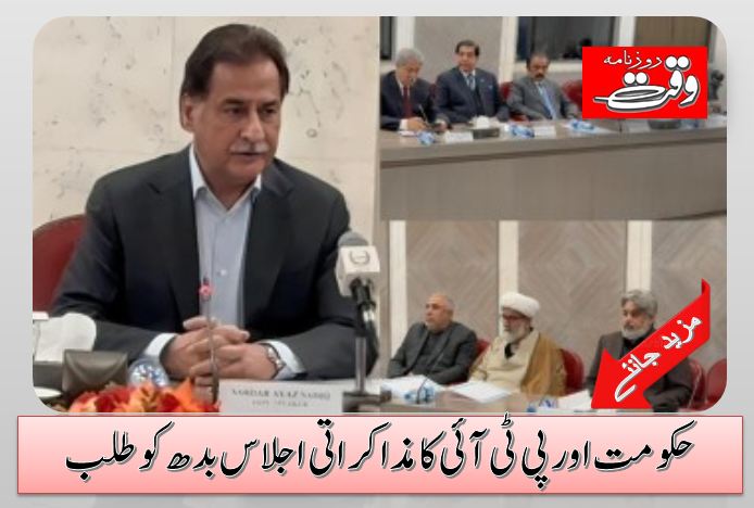 اسلام آباد(ویب ڈیسک) اسپیکر قومی اسمبلی نے حکومت اور پاکستان تحریک انصاف (پی ٹی آئی) کی مذاکراتی کمیٹیوں کا اہم اجلاس طلب کر لیا ہے، جو بدھ کو دوپہر ایک بجے پارلیمنٹ ہاؤس کے کمیٹی روم نمبر پانچ میں ہوگا۔ اجلاس ان کیمرہ ہوگا، اور پی ٹی آئی اپنی تحریری مطالبات حکومتی نمائندوں کے سامنے پیش کرے گی۔