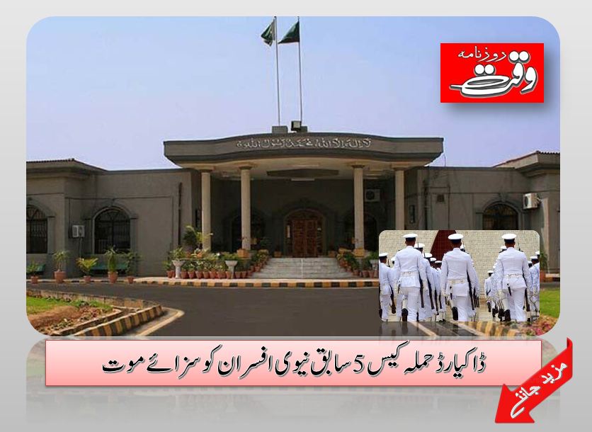 اسلام آباد(ویب ڈیسک)اسلام آباد ہائی کورٹ نے ڈاکیارڈ حملہ کیس میں سزائے موت پانے والےنیوی کے 5 سابق افسران کی دستاویزات کے حصول کی درخواست نمٹا دی۔ جسٹس بابر ستار نے پٹیشنرز کے وکلا کے بیان کے بعد درخواست نمٹانے کا فیصلہ سنایا۔ درخواست نیوی کے سابق افسران ارسلان نذیر ستی،محمد حماد،محمد طاہر رشید،حماد احمد اور عرفان اللہ کی جانب سے دائر کی گئی تھی۔اسلام آباد ہائی کورٹ نے سابق نیوی افسران کو فیلڈ جنرل کورٹ مارشل سے سزائے موت کے فیصلے پر عمل درآمد روکنے کا حکم امتناع ختم کردیا۔