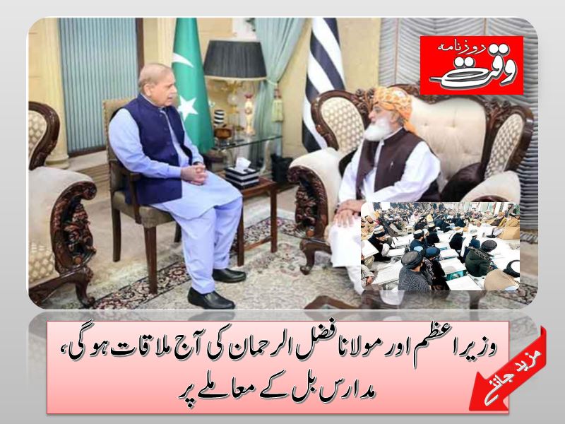 وزیراعظم اور مولانا فضل الرحمان کی آج ملاقات ہوگی، مدارس بل کے معاملے پر