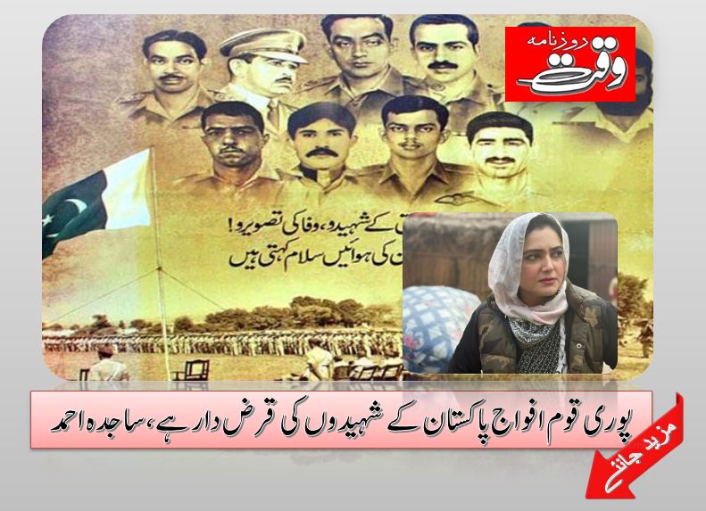 شہدا ء کی عظیم قربانیاں سنہری حروف میں لکھی جائیں گی،تمام ریاستی ادارے یکجہتی کے ساتھ پاکستان کو لاحق چیلنجوں کا مقابلہ کررہے ہیں،پوری قوم افواج پاکستان کے شہیدوں کی قرض دار ہے،قوم پاک فوج اور اپنے سکیورٹی اداروں کی پشت پر کھڑی ہے انہوں نے کہاکہ جذبہ ایمانی اور شوق شہادت سے سرشار افواج پاکستان کے آفیسرز اور سپاہی دہشت گردی کے خاتمے کے مشن پر گامزن ہیں